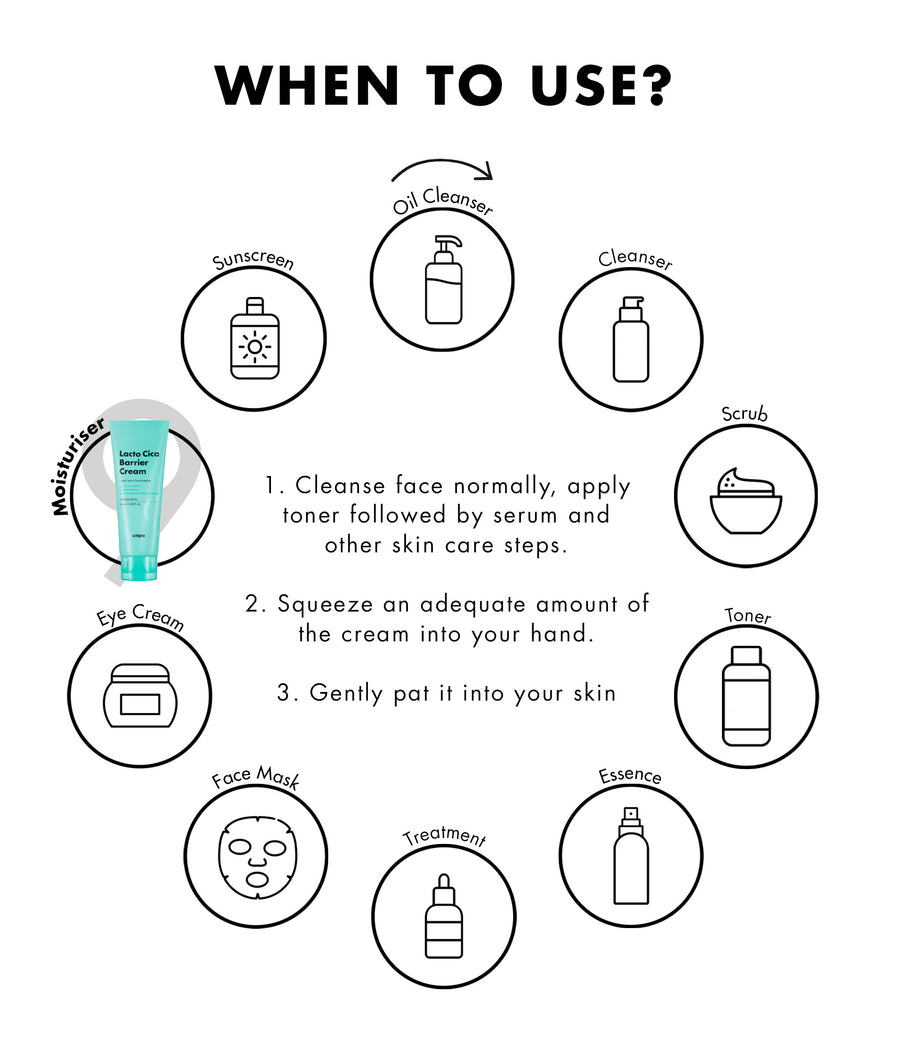 The unpa Lacto Cica Barrier Cream is a balm-like formula that soothes the skin using 3 tyoes of Centella extracts and barrier strengthening probiotics. Though thick and creamy, the balm melts on contact with your skin, forming a smooth, protective barrier against external aggressors. Its non-sticky, yogurt like texture is easy to spread and absorbs quickly into the skin. A highly moisturising cream, it is suitable for dry, aging and sensitive skin.