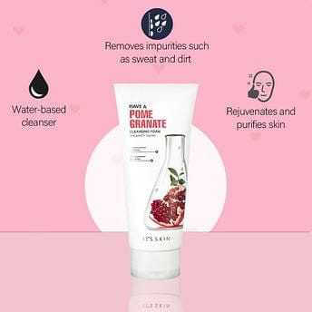 It's Skin Have a Pomegranate Cleansing Foam is a refreshing cleanser that removes impurities, makeup and dirt with ease leaving skin soft, cleansed and radiant. Being rich in vitamin C and other antioxidants, pomegranates can help delay the signs of aging. These antioxidants also fight skin inflammation and treat acne breakouts and dark spots. They also naturally brighten the skin.
